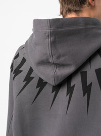Thunderbolt-print cotton hoodie Highlights - Black/grey - Cotton - Signature thunderbolt print - Pullover design - Drawstring hood - Long sleeves - Ribbed cuffs and hem - Straight hem Imported Composition Cotton 100% SIZE & FIT Model measurements Height 6 ft 1 in(1.85 m) Bust/Chest 35.43 in(90 cm) Hips 35.82 in(91 cm) Waist 27.55 in(70 cm) FittingInformation Designed for a relaxed fit, this piece allows for comfort and movement when worn The ribbed hem offers a close, comfortable fit Made from a midweight non-stretch fabric, this piece offers minimal elasticity when worn This piece fits true to size – take your usual size Washing instructions Machine Wash