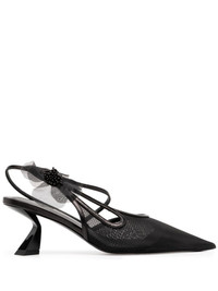 65mm faux-flower leather pumps Highlights - Black - Mesh detailing - Leather trim - Faux-flower detailing - Pointed toe - Elasticated slingback strap - Full lining - Branded leather insole - 65mm mid sculpted heel Made in Italy Composition Leather 100% SIZE & FIT Measurement HEEL 2.55 in(6.5 cm) HEIGHT 2.36 in(6 cm)