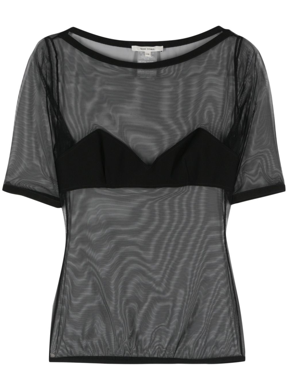 bra-effect-panel mesh T-shirt Highlights - Black - Stretch-design - Mesh design - Semi-sheer construction - Bra-effect panel - Crew neck - Short sleeves - Straight hem - Unlined Made in Italy Composition Polyamide 84%, Elastane 16% SIZE & FIT FittingInformation Designed for a close fit throughout Made from a lightweight stretch fabric, this piece offers elasticity and flexibility when worn This piece fits true to size – take your usual size