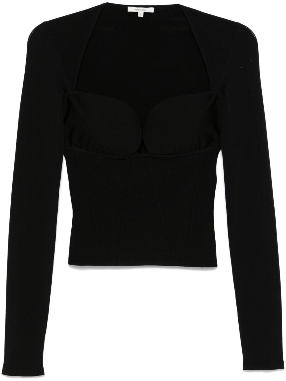 bustier-style top Highlights - Bustier-style neckline - Black - Stretch-design - Bustier-style neckline - Long sleeves - Straight hem - Cropped Made in Italy Composition Viscose 81%, Polyester 16%, Polyamide 3% SIZE & FIT Model measurements Height 5 ft 9 in(1.75 m) Bust/Chest 31.88 in(81 cm) Hips 34.64 in(88 cm) Waist 24.01 in(61 cm) FittingInformation Designed for a close fit throughout The moulded cups offer shape and support Made with a midweight knit, this piece offers some stretch