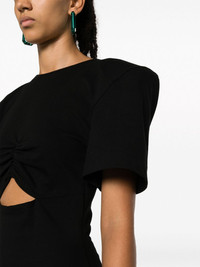 cut-out cotton minidress Form-fitting silhouettes and captivating cutouts inform Nensi Dojaka's designers, as evidenced by this black minidress. Crafted in Italy from cotton, it boasts structured shoulders and a cut-out detail at the waist, which speak to the brand's bold and empowering nature. Highlights - Black - Cotton - Cut-out detailing - Gathered detailing - Round neck - Short sleeves - Straight hem Made in Italy Composition Cotton 100% SIZE & FIT Model measurements Height 5 ft 10 in(1.77 m) Bust/Chest 31.88 in(81 cm) Hips 36.22 in(92 cm) Waist 24.01 in(61 cm) FittingInformation Designed for a close fit throughout The internal shoulder pads offer a structured shape Made from a midweight non-stretch fabric, this piece offers minimal elasticity when worn This piece fits true to size – take your usual size