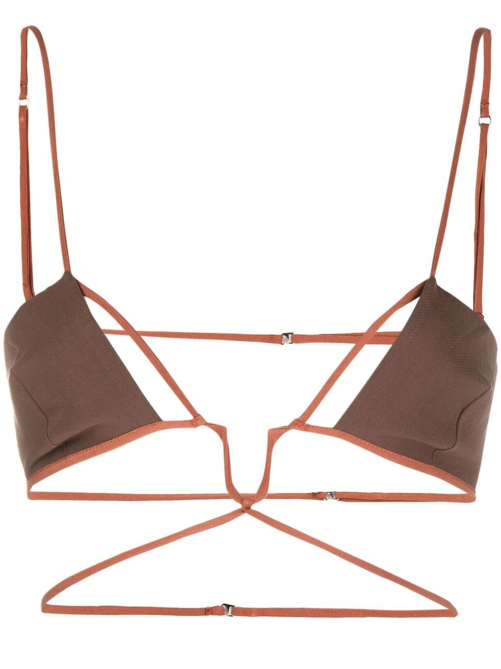 cut-out crop top Nensi Dojaka’s distinctive aesthetic juxtaposes delicate lingerie-inspired details with graphic silhouettes. Echoing a classic bralette, this crop top is made from stretch cotton jersey and traced with fine cut-out straps for a bold look. Made in Italy Composition Cotton 100% SIZE & FIT Model measurements Height 5 ft 10 in(1.79 m) Bust/Chest 31.1 in(79 cm) Hips 35.03 in(89 cm) Waist 24.01 in(61 cm) FittingInformation This piece fits true to size. We recommend you get your regular size Cut for a close fit Made with a lightweight non-stretch fabric Washing instructions Hand Wash