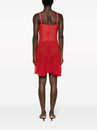cut-out tulle minidress Favouring lingerie-inspired designs, Nensi Dojaka presents this red semi-sheer minidress. Reminiscent of a slip, it's cut from tulle to an asymmetric silhouette with a rounded cut-out at the bust that speaks to the label's daring aesthetic. Highlights - Bright red - Thin shoulder straps - Cut-out detailing - Tulle overlay - Gathered detailing - Thigh-length Made in Italy Composition Silk 100%, Viscose 83%, Polyamide 12%, Spandex/Elastane 5% SIZE & FIT Model measurements Height 5 ft 10 in(1.77 m) Bust/Chest 32.28 in(82 cm) Hips 35.03 in(89 cm) Waist 25.19 in(64 cm) FittingInformation Designed for a close fit throughout Made from a midweight stretch fabric, this piece offers elasticity and flexibility when worn This piece fits true to size – take your usual size Washing instructions Dry Clean Only