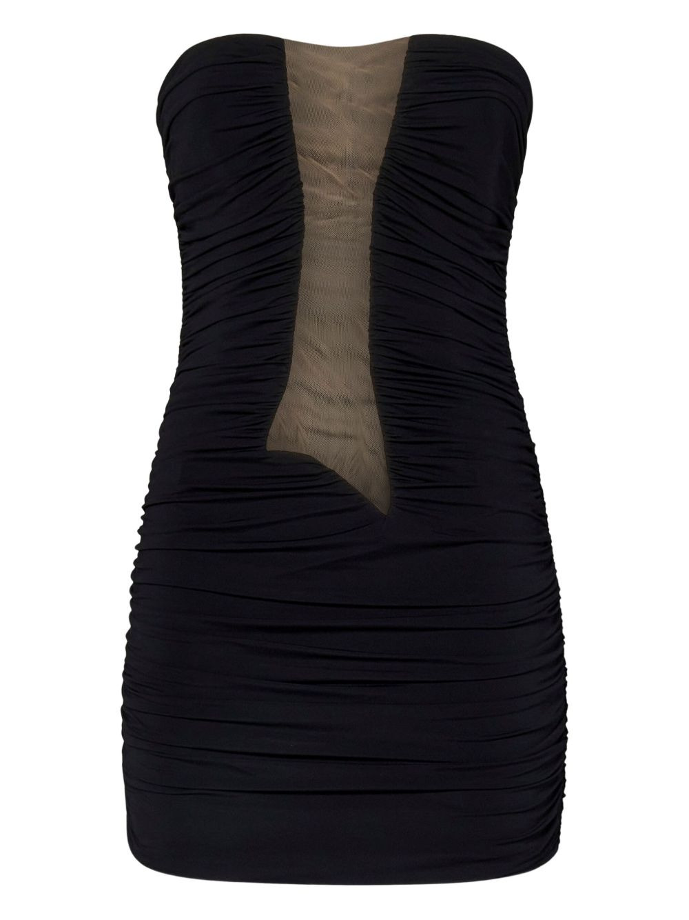 draped mesh-insert mini dress Highlights - Black - Draped detail - Mesh insert - Strapless neckline - Concealed zip fastening Made in Italy Composition Viscose 92%, Spandex/Elastane 8% Washing instructions Read Manufacturer Guidelines