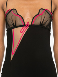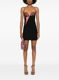Heartbeat mini dress Highlights - Black - Stretch-design - Contrasting trim - Two adjustable shoulder straps - Sweetheart neck - Cut-out detailing - Mesh panelling - Straight hem - Unlined - Concealed rear hook and zip fastening Made in Italy Composition Viscose 83%, Polyamide 12%, Elastane 5% SIZE & FIT Model measurements Height 5 ft 11 in(1.8 m) Bust/Chest 32.67 in(83 cm) Hips 35.82 in(91 cm) Waist 25.98 in(66 cm) FittingInformation Designed for a close fit throughout The adjustable shoulder straps allow for a preferred fit when worn Made from a midweight stretch fabric, this piece offers elasticity and flexibility when worn This piece fits true to size – take your usual size