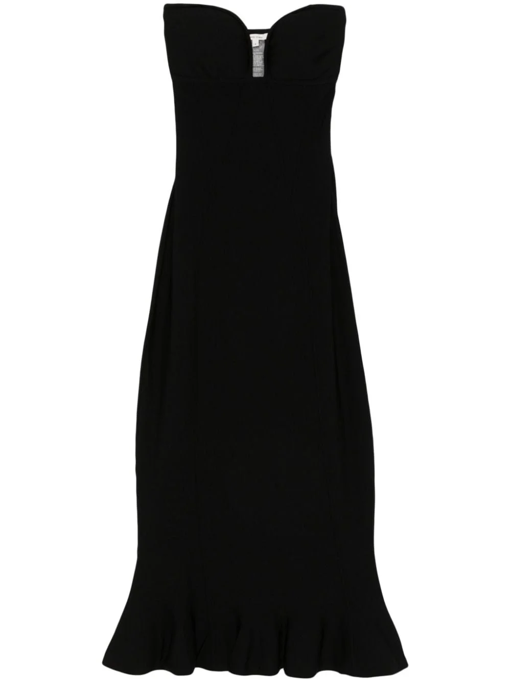 knitted midi dress Highlights - Black - Stretch-design - Knitted construction - Concealed side zip fastening - Sweetheart neck - Two adjustable detachable shoulder straps - Unlined - Bodycon design - Peplum hem Made in Italy Composition Body: Viscose 81%, Polyester 17%, Polyamide 2% SIZE & FIT Model measurements Height 5 ft 9 in(1.75 m) Bust/Chest 31.88 in(81 cm) Hips 34.64 in(88 cm) Waist 24.01 in(61 cm) FittingInformation Designed for a close fit throughout The adjustable shoulder straps allow for a preferred fit when worn Made with a midweight knit, this piece offers some stretch