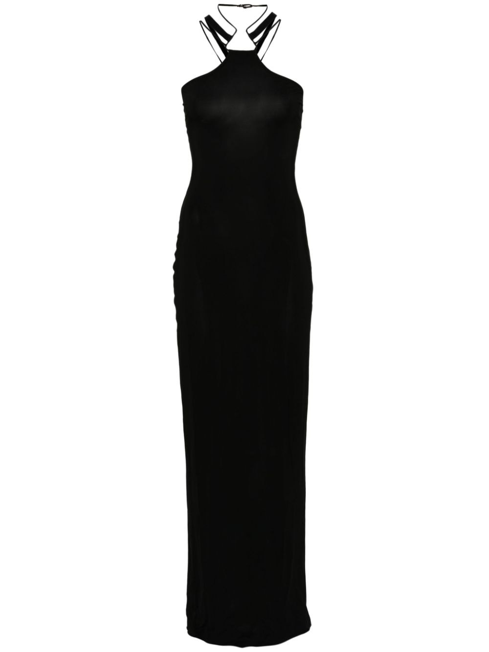 multi-strap maxi dress Highlights - Black - Stretch-jersey - Halterneck tie fastening - Crossover strap detail to the neck - Double-strap design - Thin straps - Sleeveless - Full-length - Rear criss-cross straps - Cut-out detailing to the rear - Rear slit - Unlined - Straight hem - Pull-on style Made in Italy Composition Viscose 92%, Elastane 8% SIZE & FIT Model measurements Height 5 ft 10 in(1.78 m) Bust/Chest 31.49 in(80 cm) Hips 37 in(94 cm) Waist 23.62 in(60 cm) FittingInformation Designed for a close fit throughout Made from a lightweight stretch fabric, this piece offers elasticity and flexibility when worn This piece fits true to size – take your usual size