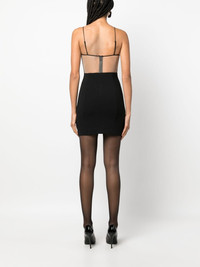 panelled bustier minidress Nensi Dojaka's creations lie somewhere between clothing and lingerie with their diaphanous materials and skin-baring silhouettes. A case in point, this black minidress juxtaposes a solid skirt that curves up to the sheer tulle bustier bodice. Pleated ruffles adorn the underwire cups for signature frill. Highlights - Black - Jersey knit - Tulle panel - Ruffled detailing - Bustier-style neckline - Built-in underwire bra - Rear zip fastening - Adjustable spaghetti straps - Thigh-length - Straight hem - Partial lining Made in Italy Composition Viscose 83%, Polyester 12%, Spandex/Elastane 5% SIZE & FIT Model measurements Height 5 ft 10 in(1.78 m) Bust/Chest 33.07 in(84 cm) Hips 36.61 in(93 cm) Waist 24.8 in(63 cm) Measurement HIPS 33.85 in(86 cm) LENGTH 21.65 in(55 cm) WAIST 29.13 in(74 cm) BUST 26.77 in(68 cm) FittingInformation Designed for a close fit throughout The moulded cups offer shape and support Made from a midweight stretch fabric, this piece offers elasticity and flexibility when worn This piece fits true to size – take your usual size