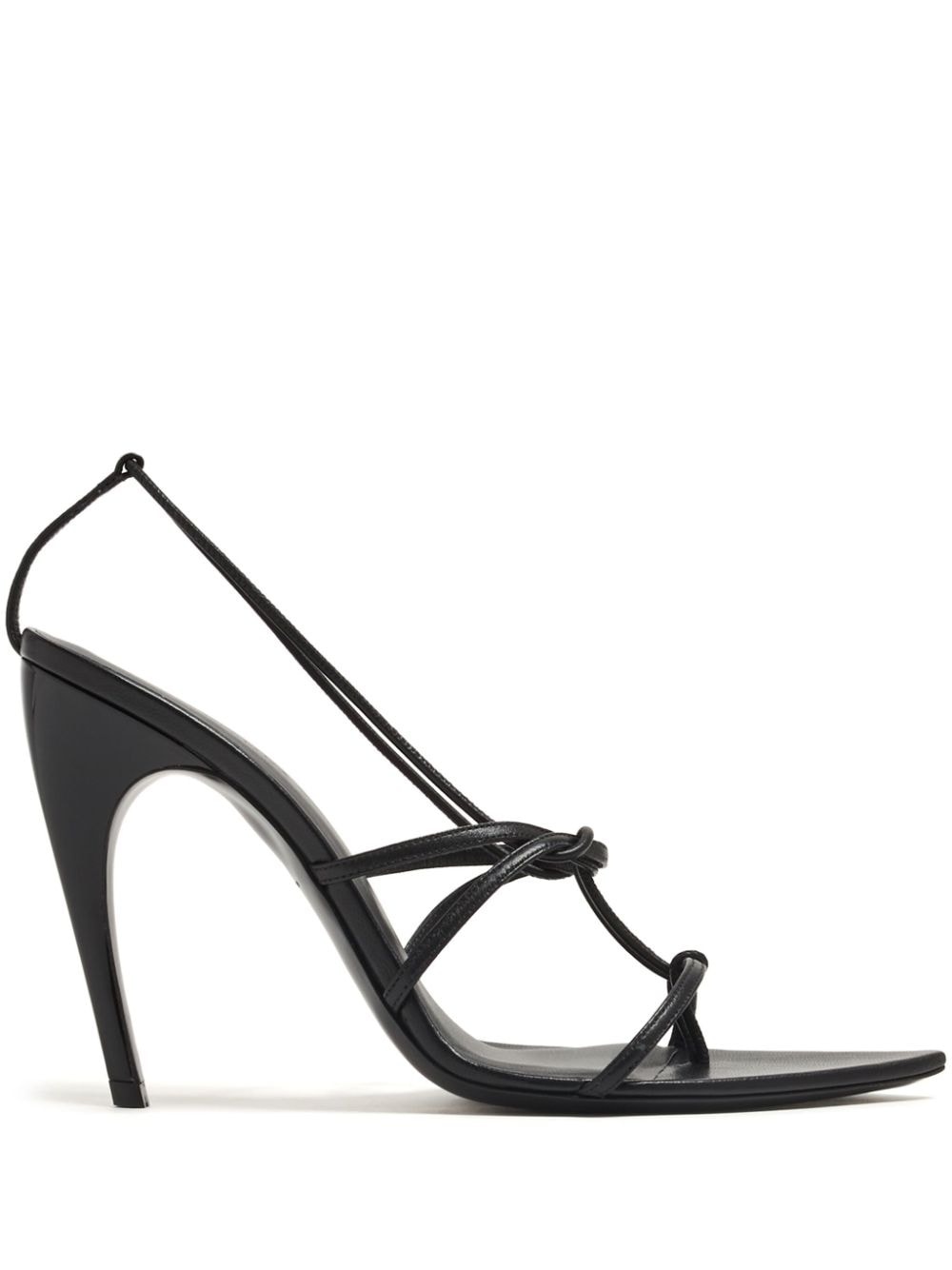pointed-toe leather sandals Highlights - Black - Calf leather - High stiletto heel - Branded footbed - Caged design - Open toe - Pointed toe - Logo sole Made in Italy Composition Sole: Calf Leather 100% Lining: Calf Leather 100% Outer: Calf Leather 100%