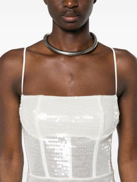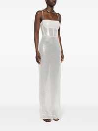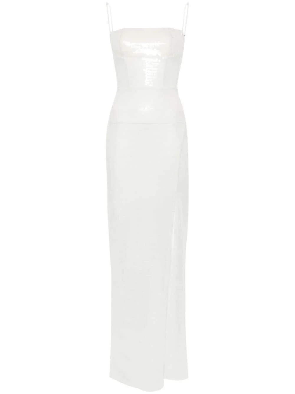 sequinned maxi dress Highlights - White - Mesh design - Sequin embellishment - Semi-sheer construction - Square neck - Adjustable spaghetti straps - Sleeveless - Side slit - Concealed rear zip fastening - Floor-length - Straight hem - Mesh lining - Corset style Imported Composition Fabric 100% SIZE & FIT Model measurements Height 5 ft 10 in(1.77 m) Bust/Chest 32.28 in(82 cm) Hips 35.03 in(89 cm) Waist 25.19 in(64 cm) FittingInformation Designed for a close fit throughout The adjustable shoulder straps allow for a preferred fit when worn Made from a midweight stretch fabric, this piece offers elasticity and flexibility when worn This piece fits true to size – take your usual size Washing instructions Dry Clean Only