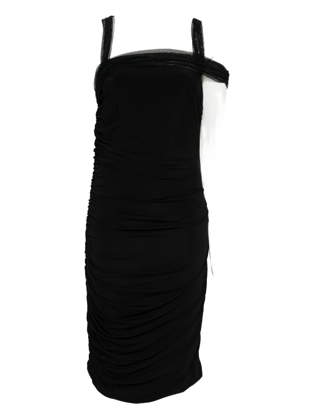 tulle-detail ruched midi dress Highlights - Black - Tulle detailing - Fully ruched - Thin shoulder straps - Asymmetric design Imported Composition Viscose 92%, Elastane 8% Washing instructions Dry Clean Only
