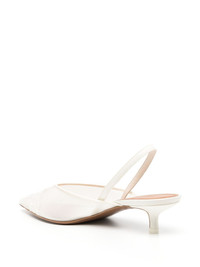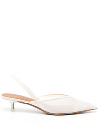 45mm lace-detailing slingback pumps Highlights - White - Lace detailing - Pointed toe - Elasticated slingback strap - Slip-on style - Kitten heel - Branded leather insole - Leather outsole - 45mm heel Made in Italy Composition Sole: Calf Leather 100% Outer: Fabric 100% Lining: Fabric 50%, Calf Leather 50% SIZE & FIT Measurement HEEL 17.71 in(45 cm) HEIGHT 2.75 in(7 cm)