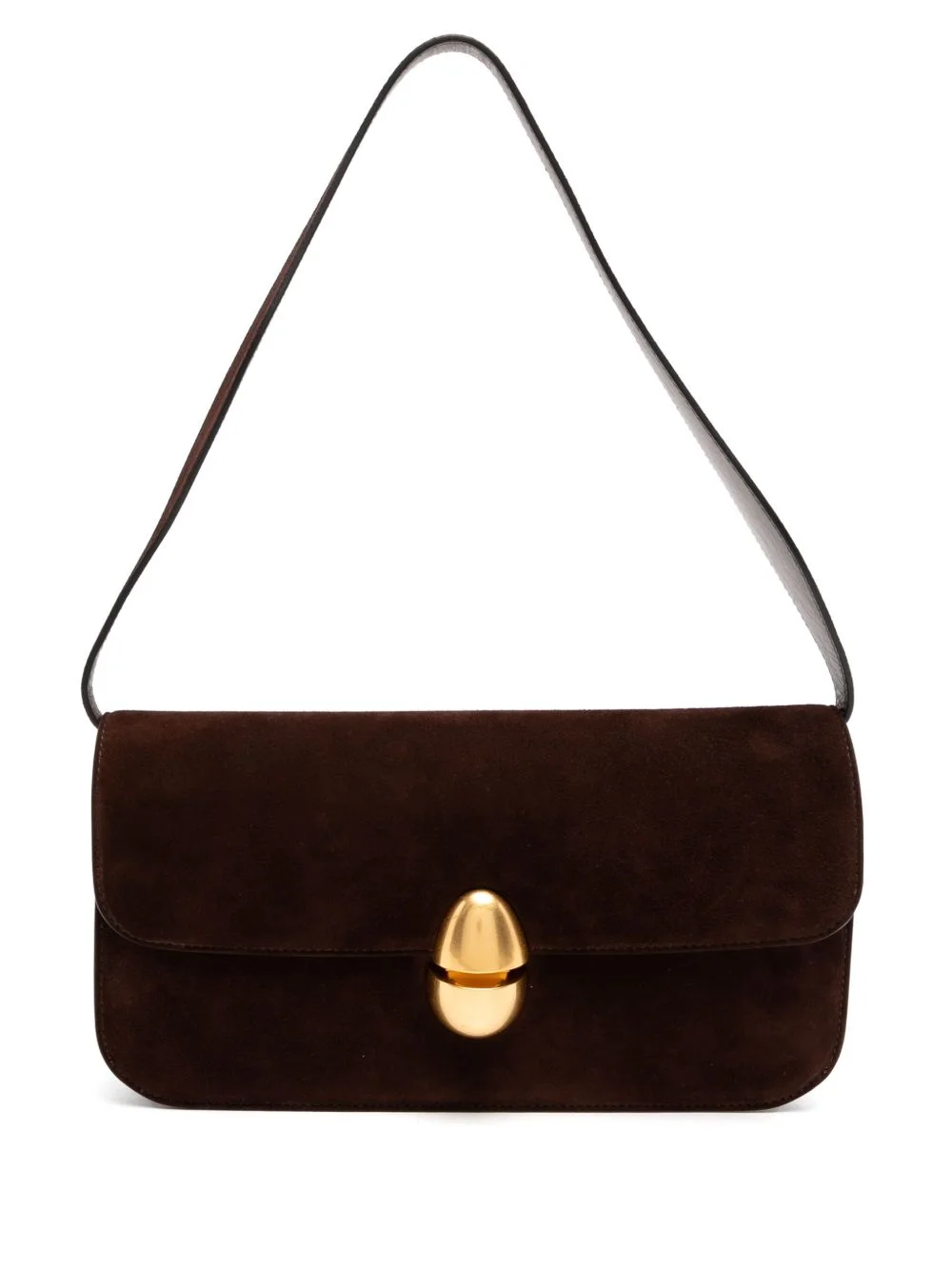 Phoenix shoulder bag Highlights - Chocolate brown - Suede - Adjustable detachable shoulder strap - Gold-tone hardware - Open front - Debossed logo to the front - Main compartment - Gold-tone logo lettering - This piece comes complete with a protective dust bag. Made in Italy Composition Suede 100% SIZE & FIT Model measurements Height 5 ft 10 in(1.77 m) Bust/Chest 31.49 in(80 cm) Hips 35.43 in(90 cm) Waist 25.19 in(64 cm) Measurement DEPTH 2.36 in(6 cm) HEIGHT 1.96 in(5 cm) WIDTH 3.54 in(9 cm)