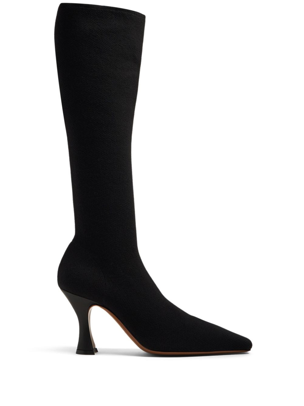 Ran 80mm stretch-knit boots These Ran knee-high boots are rendered in black and made from wool that allows a contoured look. Handcrafted in Italy, they're set on a sculptural hourglass heel. Highlights - Black - Wool - Square toe - Knee-high - High sculpted heel Made in Italy Composition Outer: Wool 100% Lining: Wool 100% Sole: Calf Leather 100%