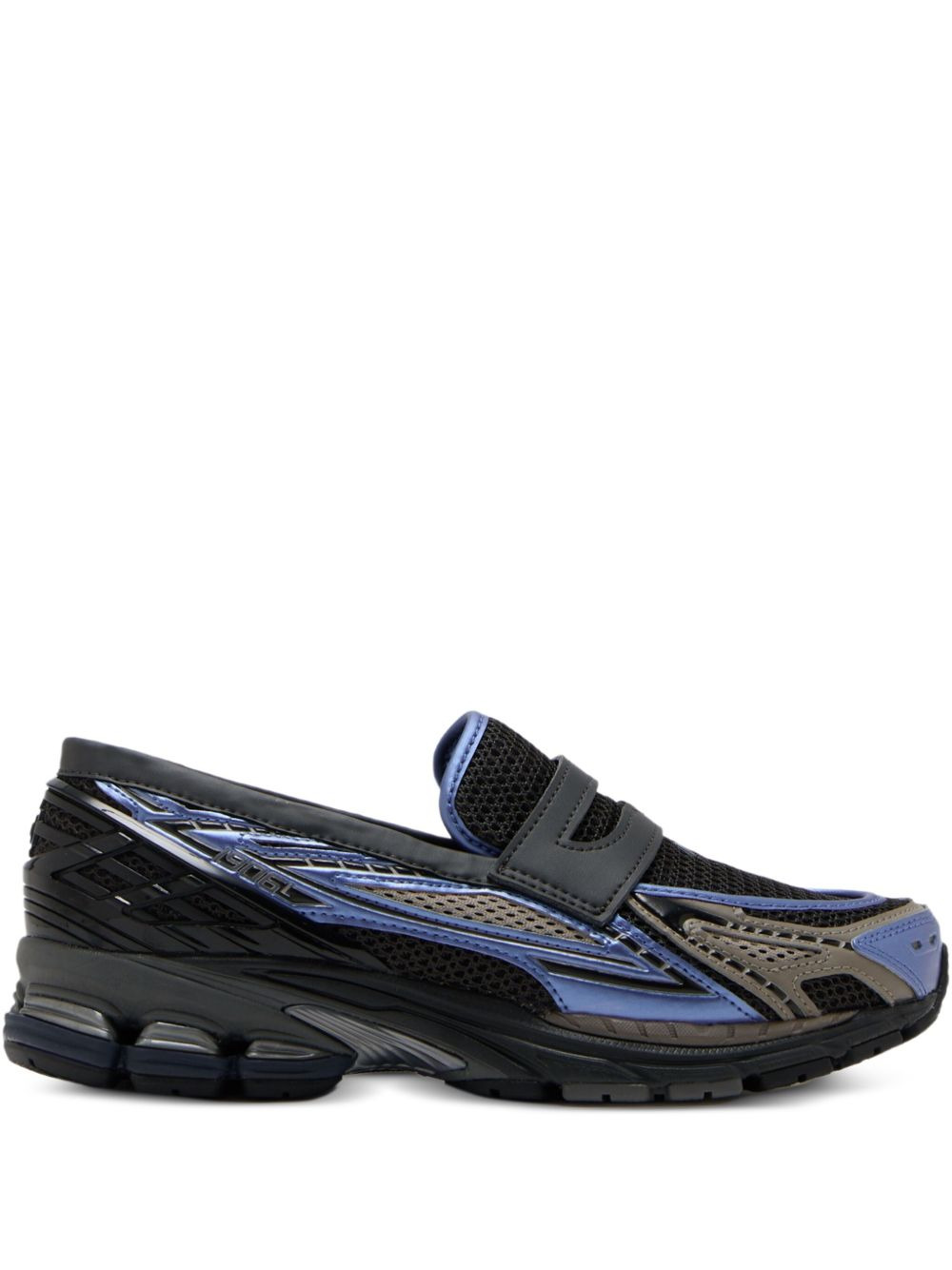 1906L slip-on mesh sneakers Highlights - Black - Mesh upper - Leather strap - Metallic blue accents - Sculpted sole - Padded insole Imported Composition Outer: Mesh 100%, Calf Leather 100% Lining: Fabric 100% Sole: Rubber 100%