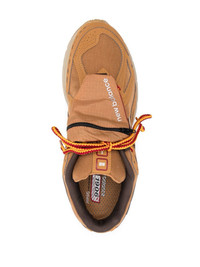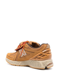 1906R panelled low-top sneakers Highlights - Cognac brown - Leather - Panelled design - Logo patch to the side - Logo patch at the tongue - Embossed logo to the rear - Branded insole - Front zip-fastening pocket - Round toe - Front lace-up fastening - Chunky rubber sole Made in Italy Composition Outer: Leather 100%, Fabric 100% Sole: Rubber 100% Lining: Fabric 100% SIZE & FIT Measurement HEEL 1.57 in(4 cm) Sole height 0.78 in(2 cm)