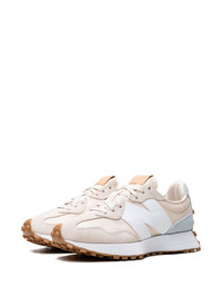 327 "Calm Taupe/Morning Fog" sneakers The New Balance 327 is a running shoe that stands out thanks to its innovative design. This model is crafted from mesh and suede and features a classic silhouette enhanced by an asymmetrically applied oversized 'N' branding and a wraparound trail-inspired outsole. Highlights - Light pink/light blue - Mesh design - Leather trim - Suede trim - Applique logo - Logo patch at the tongue - Round toe - Front lace-up fastening - Branded insole - Rubber outsole Imported Composition Leather 100% SIZE & FIT Measurement HEEL 1.18 in(3 cm) Sole height 0.59 in(1.5 cm)