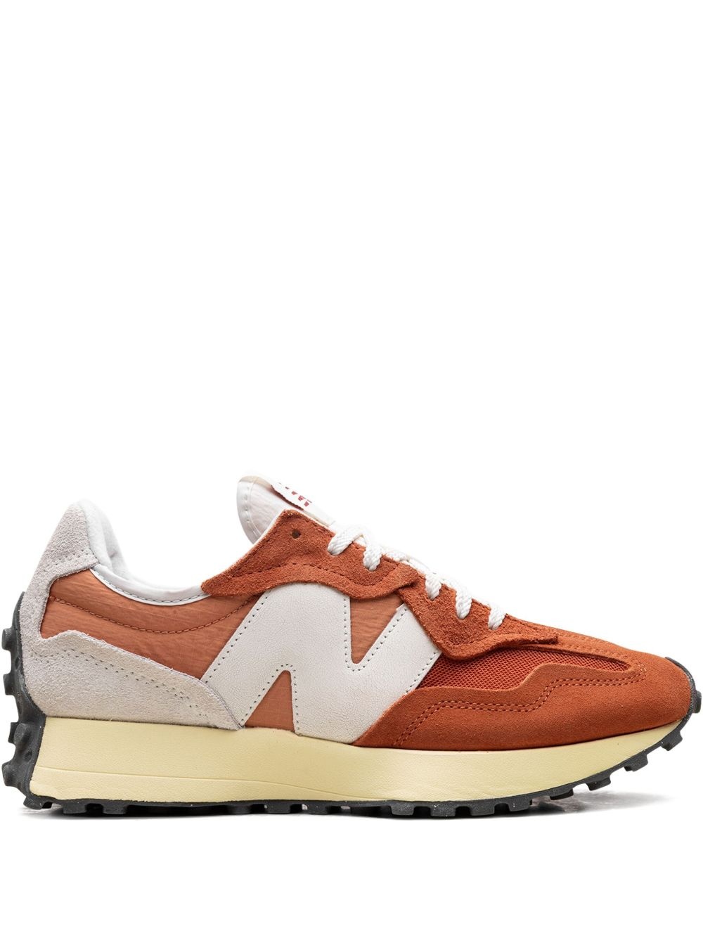 327 "Infield Clay/Copper" sneakers Highlights - Copper orange - Suede panelling - Ripstop texture - Mesh panelling - Front lace-up fastening - Contrasting heel counter - Logo patch at the tongue - Embroidered logo to the side - Almond toe - Branded insole - Studded sole - These styles are supplied by a premium and authenticated sneaker marketplace. stocking only the most sought-after footwear, they source and curate some of the most hard to find sneakers from around the world. Imported Composition Sole: Rubber 100% Outer: Calf Suede 100%, Fabric 100% Lining: Fabric 100% SIZE & FIT Measurement HEEL 1.18 in(3 cm) Sole height 0.78 in(2 cm)