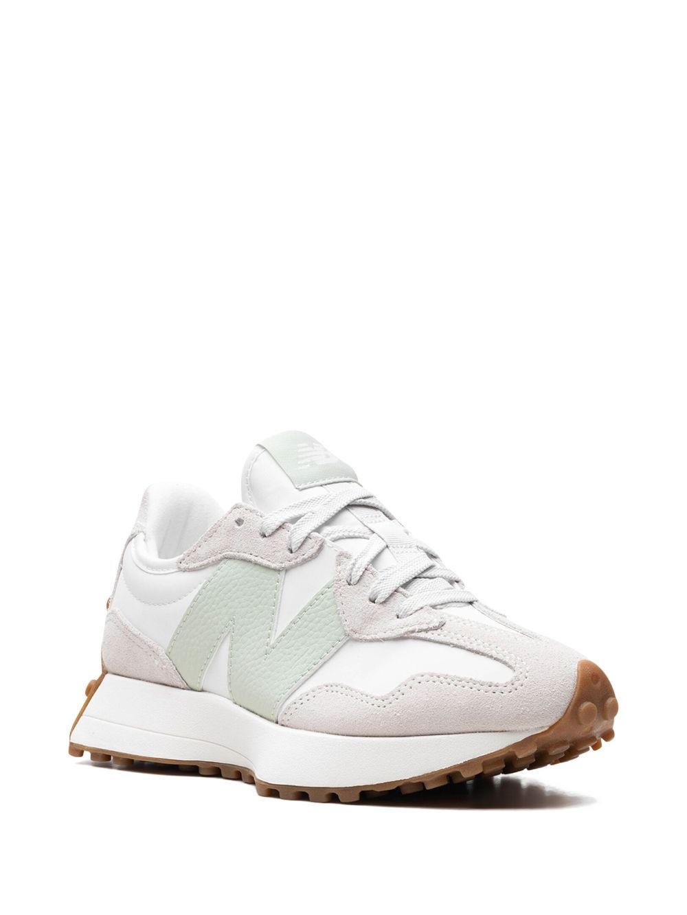 327 panelled sneakers Nodding to 1970s style, the New Balance 327 offers an effortless low-top silhouette and panelled design. To the side, a large 'N' logo adds an instantly recognisable touch. Highlights - Beige - Suede - Mesh panelling - Round toe - Front lace-up fastening - Logo patch at the tongue - Branded insole - Rubber sole Imported Composition Sole: Rubber 100% Lining: Fabric 100% Outer: Leather 100%, Suede 100%