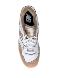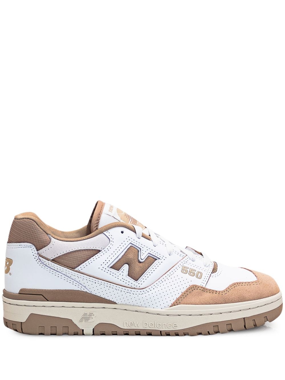 550 "Incense" sneakers Making its debut on the basketball court in 1989, the New Balance 550 resurfaced in the 2020s only to become a firm favourite on the streets, too. This pair is crafted from panels of leather and mesh with a grippy rubber outsole for a more streamlined take on the heavy-duty prototype. Highlights - White/beige - Calf leather - Mesh panelling - Perforated detailing - Logo patch to the side - Round toe - Front lace-up fastening - Logo patch at the tongue - Branded insole - Rubber sole - These styles are supplied by a premium and authenticated sneaker marketplace. stocking only the most sought-after footwear, they source and curate some of the most hard to find sneakers from around the world. Imported Composition Leather 100% SIZE & FIT Measurement HEEL 1.37 in(3.5 cm) Sole height 1.18 in(3 cm)