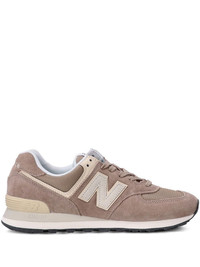 574 low-top sneakers One of New Balance’s most iconic and versatile styles, the 574, appears here in an earthy beige colourway. The panelled design features classic details such as the numbered logo patch on the tongue while the ‘N’ logo patch to the side acts as an unmissable branded finish. Highlights - Taupe brown/light beige - Leather - Round toe - Micro-mesh panels - Front lace-up fastening - Logo patch at the tongue - Branded insole - Embroidered logo to the rear - Logo patch to the side Imported Composition Outer: Leather 100%, Other Materials 100% Lining: Fabric 100% Sole: Rubber 100% Washing instructions Read Manufacturer Guidelines