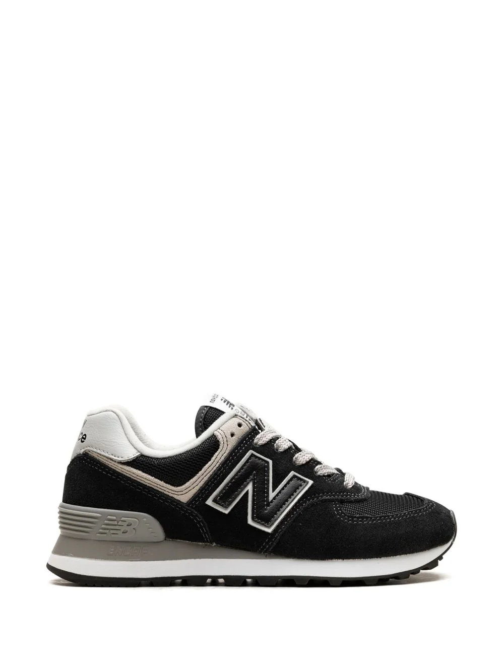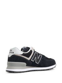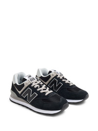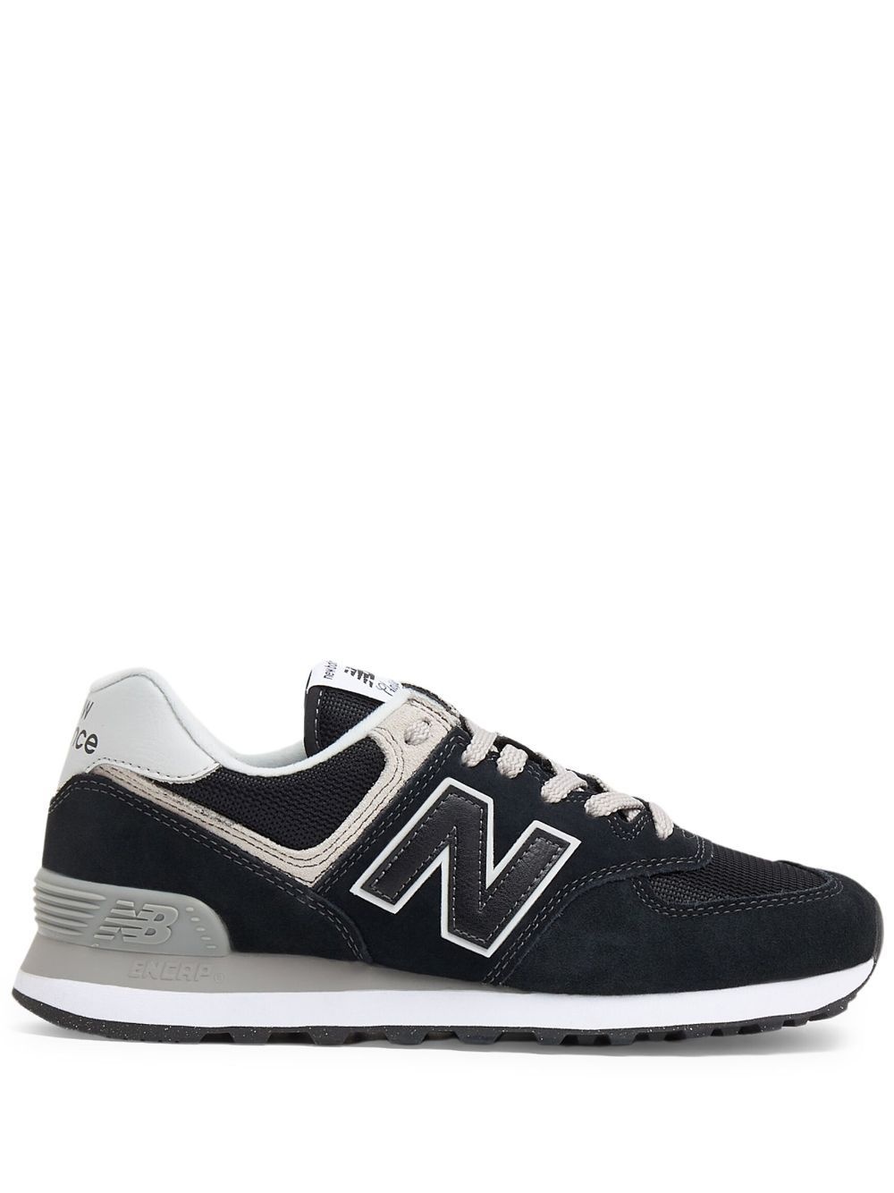 574 panelled low-top sneakers The iconic New Balance 574 sneakers now appear in a black and light grey colourway. This model is crafted with soft suede and mesh panels for improved breathability, and sits atop a lightweight EVA foam midsole which provides ensured comfort. Highlights - Black/light grey - Suede - Panelled design - Mesh panelling - Logo patch to the side - Round toe - Logo patch at the tongue - Branded heel counter - Branded insole - Eva midsole - Rubber sole Imported Composition Sole: Rubber 100% Lining: Fabric 100% Outer: Suede 100%, Recycled Polyester 100%