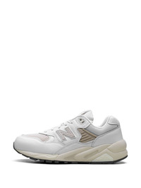 580 "White/Tan" sneakers An adaptation of the 585, New Balance’s legendary 580 sneaker first gained popularity on the streets of Harajuku before a recent re-issue. This white and tan pair is crafted in panels of suede, leather and mesh to recreate the prototype silhouette and updated with a slimmer toe and lower collar. Highlights - White/beige - Suede - Leather - Mesh panelling - Front lace-up fastening - Branded heel counter - Padded ankle - Logo patch at the tongue - Applique logo - Contrasting panel detail - Round toe - Mesh lining - Branded insole - Chunky rubber sole - These styles are supplied by a premium and authenticated sneaker marketplace. stocking only the most sought-after footwear, they source and curate some of the most hard to find sneakers from around the world. Imported Composition Leather 100%