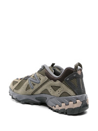 610v1 panelled mesh sneakers The New Balance 610v1 sneakers are reimagined in an understated olive green, medium grey and brown colourway. The naughties-inspired trail silhouette combines a leather, nubuck and mesh upper with a C-CAP midsole and ridged rubber sole that provide cushioning and stability. Highlights - Olive green/medium grey/brown - Mesh design - Panelled design - Logo patch to the side - Logo patch at the tongue - Round toe - Front lace-up fastening - Padded ankle - Double pull-tab at the opening - Branded insole - C-cap midsole - Rubber sole Imported Composition Outer: Calf Leather 100%, Fabric 100% Lining: Fabric 100% Sole: Rubber 100% SIZE & FIT Measurement HEEL 1.57 in(4 cm) Sole height 0.98 in(2.5 cm)