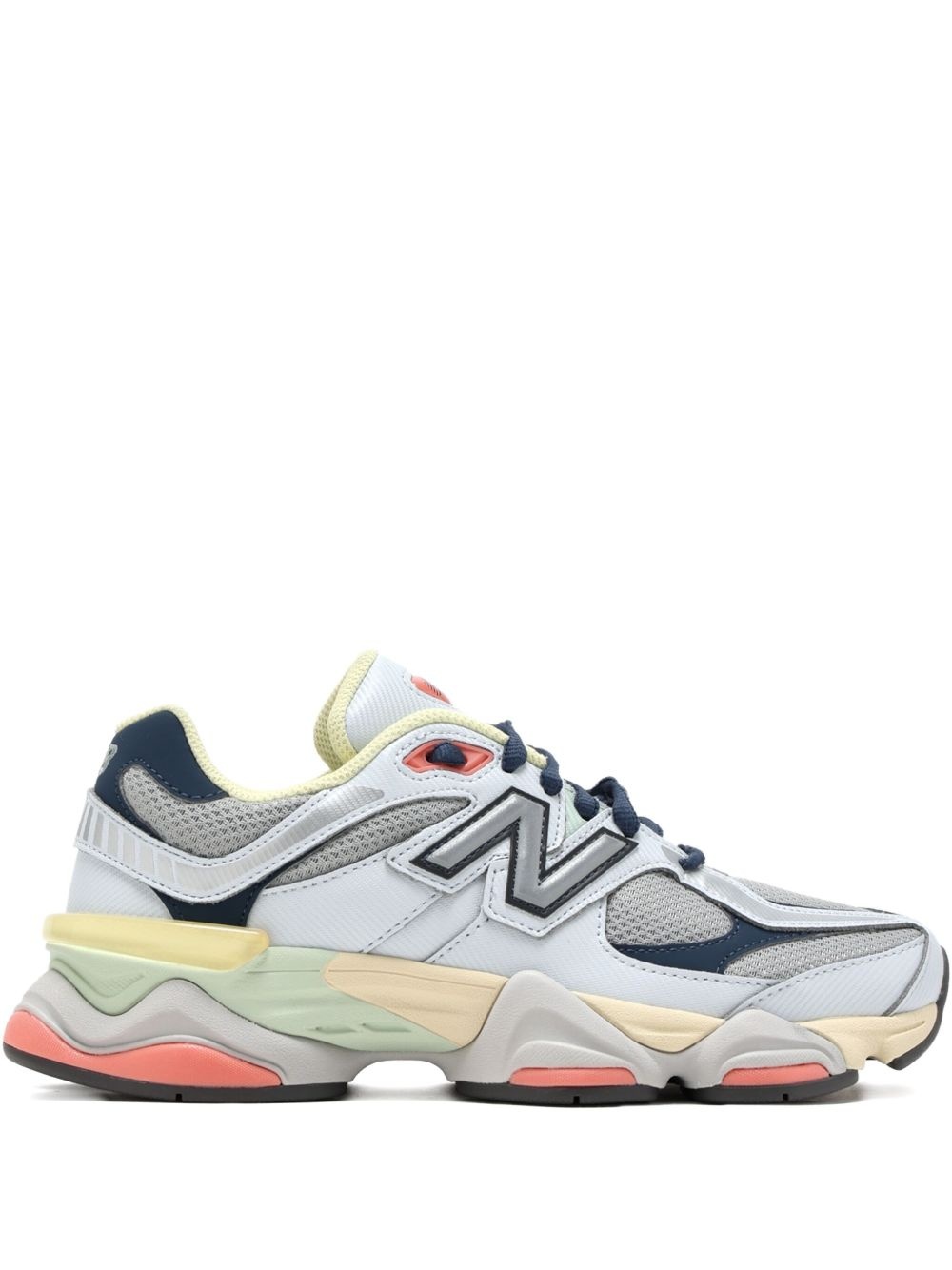 9060 mesh-panelled chunky sneakers Highlights - Grey - Padded collar - Chunky rubber sole - Front lace-up closure - Logo detailing Imported Composition Lining: Other fibres 100% Outer: Leather 100% Sole: Rubber 100%