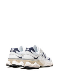 9060 "White" sneakers New Balance’s 9060 sneaker reinterprets elements of the 99X models with a futuristic twist inspired by the Y2K. The upper amplifies the same sway bars found on 990 styles while wavy lines and exaggerated pod midsoles amp-up the look of the signature ABZORB cushioning. Highlights - White/navy blue - Calf leather - Mesh panelling - Logo patch to the side - Logo patch at the tongue - Signature diamond-pattern outsole - Branded heel counter - Chunky rubber sole - Abzorb and sbs cushioning - These styles are supplied by a premium sneaker marketplace. stocking only the most sought-after footwear, they source and curate some of the most hard to find sneakers from around the world. Imported Composition Leather 100% SIZE & FIT Measurement HEEL 1.57 in(4 cm) Sole height 0.78 in(2 cm)