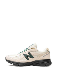990 lace-up sneakers Highlights - White/black - Leather - Mesh panelling - Logo patch at the tongue - Logo-embellished side panels - Branded heel counter - Front lace-up fastening - Round toe - Branded insole - Contrasting rubber sole Imported Composition Sole: Rubber 100% Outer: Mesh 100%, Leather 100% Lining: Fabric 100%