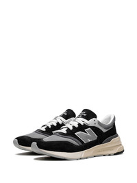997R "Black/Grey" sneakers The classic New Balance 997 now arrives in a tonal black and grey colour scheme. This model is crafted from a mix of calf suede and mesh panels and is enhanced with the usual 'N' logo on the sides. Underneath, a flat rubber sole completes the design. Highlights - Black/grey - Suede - Panelled design - Branded heel counter - Logo-embroidered tongue - Logo patch to the side - Front lace-up fastening - Round toe - Flat rubber sole - These styles are supplied by a premium sneaker marketplace. stocking only the most sought-after footwear, they source and curate some of the most hard to find sneakers from around the world. Imported Composition Sole: Rubber 100% Outer: Suede 100%, Mesh 100% Lining: Fabric 100%