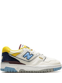 550 "Marquette" low-top sneakers The New Balance BB550 pays tribute to the 1989 originals that defined a basketball generation. This pair stays true to its legacy with durable leather construction and a rubber outsole for better traction. However, here, bold colours add an updated and catchy look. Imported Composition Leather 100% SIZE & FIT FittingInformation This piece fits large – take one size down