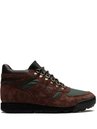 Rainier "Marblehead" trail sneakers New Balance's Rainier "Marblehead" trail sneakers are a hiking-inspired silhouette created from suede and canvas panels. A chunky Vibram outsole provides optimum traction underfoot. Highlights - Brown/green - Calf suede - Canvas - Panelled design - Round toe - Front lace-up fastening - Logo patch at the tongue - Debossed logo to the side - Ankle-length - Eva midsole - Ridged rubber sole - These styles are supplied by a premium sneaker marketplace. stocking only the most sought-after footwear, they source and curate some of the most hard to find sneakers from around the world. Imported Composition Outer: Calf Leather 100%, Fabric 100% Sole: Rubber 100% Lining: Fabric 100%