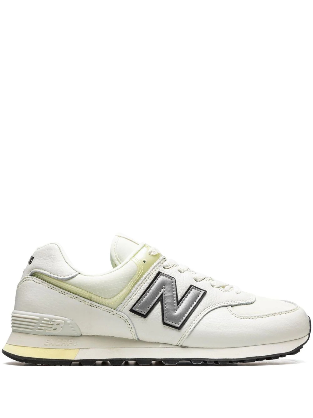 x Joe Freshgoods 574 "Conversations Amongst Us" sneakers The New Balance x Joe Freshgoods "Conversations Amongst Us" sneakers offer a minimalist take on the classic 574. This pair is crafted from bone white leather and mesh uppers with a dashed NB-branded TPU piece securing the heel. The usual 'N' logo stands out on the sides in a black and silver tone, while 'Conversations' and 'Amongst Us' text appears on the heel tabs. Imported Composition Leather 100%