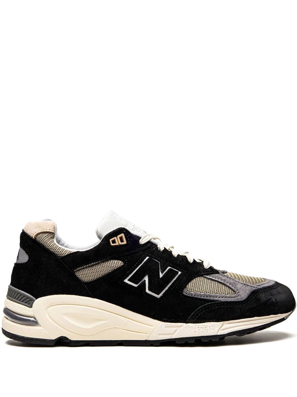 x Teddy Santis 990 V2 "Black" sneakers The Teddy Santis x New Balance 990 V2 is one of several styles from the acclaimed footwear and fashion designer’s first-ever “Made in the USA” collection. The partnership between Santis - the founder and lead designer of Aime Leon Dore - was announced in 2021 and made a reality in April 2022. Here, the sneaker features black suede overlays atop a beige mesh base and supportive rubber sole. Highlights - Black/multicolour - Leather - Panelled design - Mesh detailing - Logo patch to the side - Round toe - Front lace-up fastening - Rubber sole - These styles are supplied by a premium sneaker marketplace. stocking only the most sought-after footwear, they source and curate some of the most hard to find sneakers from around the world. Made in United States Composition Outer: Suede 100%, Mesh 100% Sole: Rubber 100% Lining: Fabric 100%