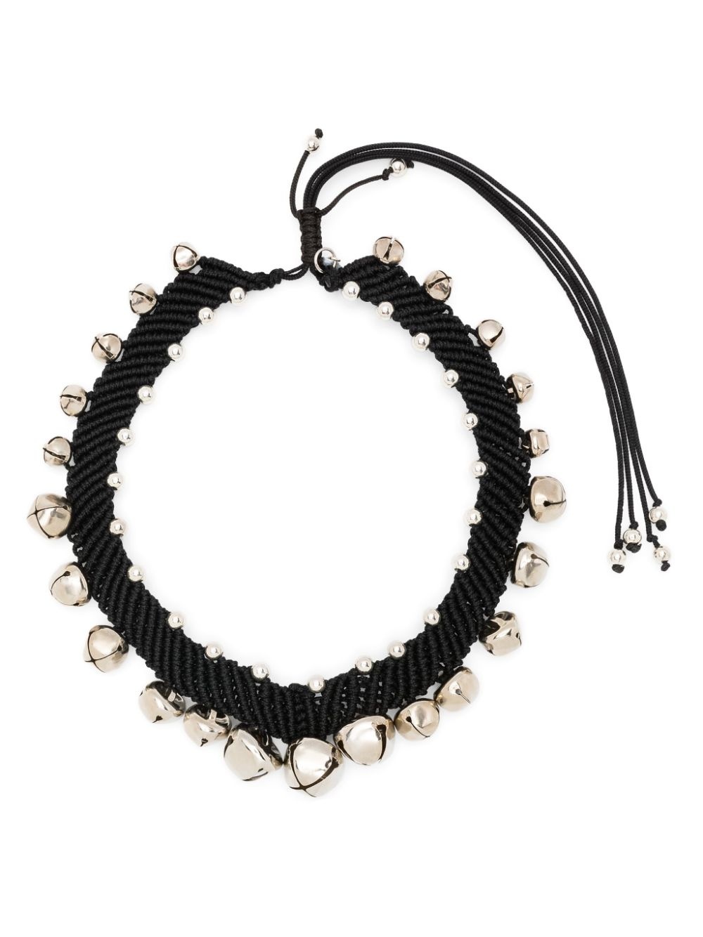 bell-charm necklace Highlights - Black/silver-tone - Metal - Braided band - Bell charm - Bead embellishment - Sliding knot fastening Made in Italy SIZE & FIT Model measurements Height 5 ft 10 in(1.77 m) Bust/Chest 32.28 in(82 cm) Hips 35.03 in(89 cm) Waist 25.19 in(64 cm) Measurement Length when open 13.77 in(35 cm)