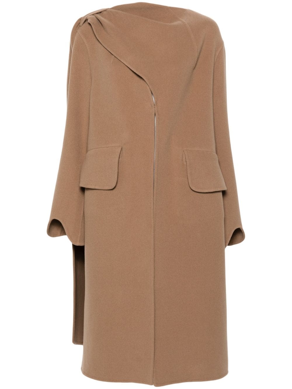 Gesto coat Highlights - Camel brown - Virgin wool blend - Scarf detailing - V-neck - Long sleeves - Straight hem - Two front flap pockets - Front hook and eye fastening Made in Italy Composition Virgin Wool 81%, Polyamide 19% SIZE & FIT Model measurements Height 5 ft 10 in(1.77 m) Bust/Chest 32.28 in(82 cm) Hips 35.03 in(89 cm) Waist 25.19 in(64 cm) FittingInformation Designed to be unstructured, offering a loose fit throughout The vented hem offers movement at the rear Made from a midweight non-stretch fabric This piece fits true to size – take your usual size