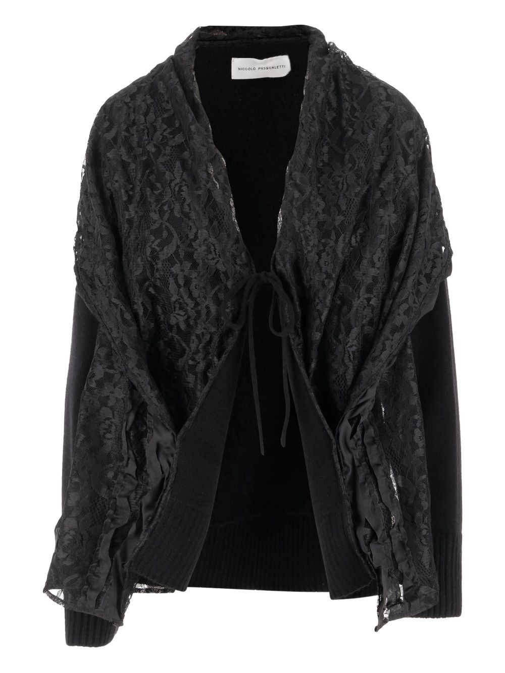 lace-insert crew-neck cardigan Highlights - Black - Merino-cashmere blend - Lace overlay - Crew neck - Tie fastening Made in Italy Composition Merino 90%, Cashmere 10% Washing instructions Read Manufacturer Guidelines