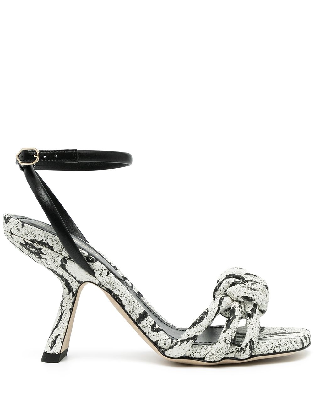 Lexi 75mm knotted high-heel sandals Nicholas Kirkwood's signature Lexi sandals are defined by the padded knot detail at the toe. The pair appears for SS22 with a monochrome snakeskin effect, sitting on top of the iconic angular heel. Made in Italy Composition Outer: Leather 100% Sole: Leather 100% Inner: Leather 100% SIZE & FIT Measurement HEEL 2.95 in(7.5 cm)