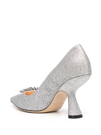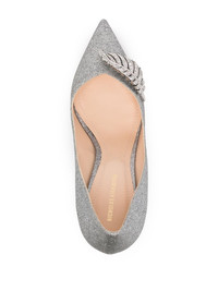 MONSTERA 90mm pumps Inspired by Nature, the Monstera leaf has become one of Nicholas Kirkwood’s most iconic symbols. In this pair, the detail is encrusted with shimmering crystals that are echoed by a glittered silver-tone construction. Highlights - Silver-tone - Glitter detailing - Leaf print - Branded insole - Slip-on style - Pointed toe Made in Italy Composition Lining: Leather 100% Sole: Leather 100% Outer: Polylactic Acid (PLA) 100% SIZE & FIT FittingInformation This piece fits true to size. We recommend you get your regular size Measurement HEEL 3.14 in(8 cm)