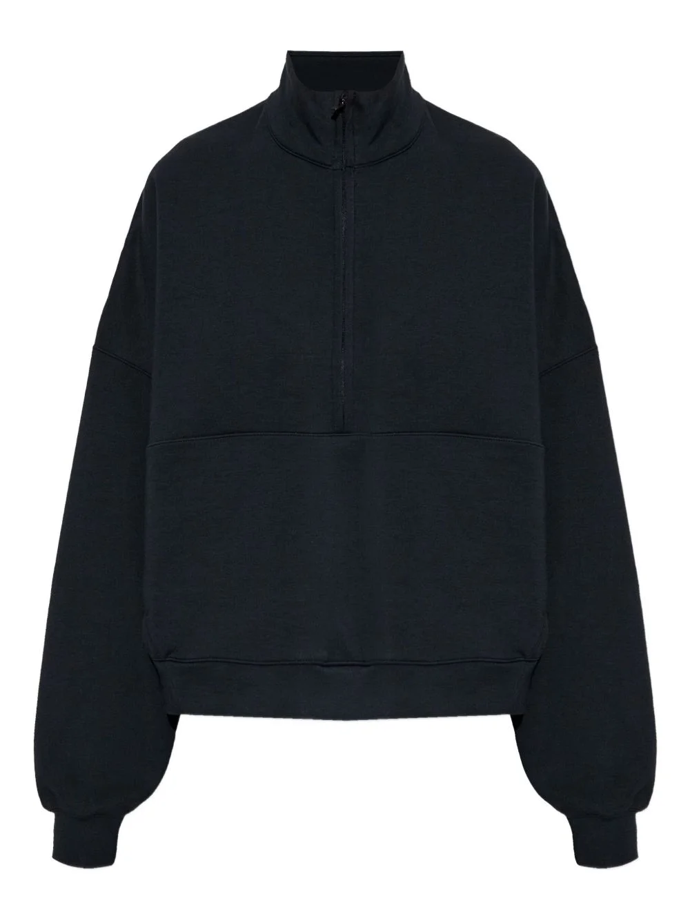 24.7 ImpossiblySoft sweatshirt Highlights - Black - Zip fastening - High neck - Long sleeves Imported Composition Polyester 51%, Modal 25%, Cotton 15%, Elastane 9% Washing instructions Read Manufacturer Guidelines
