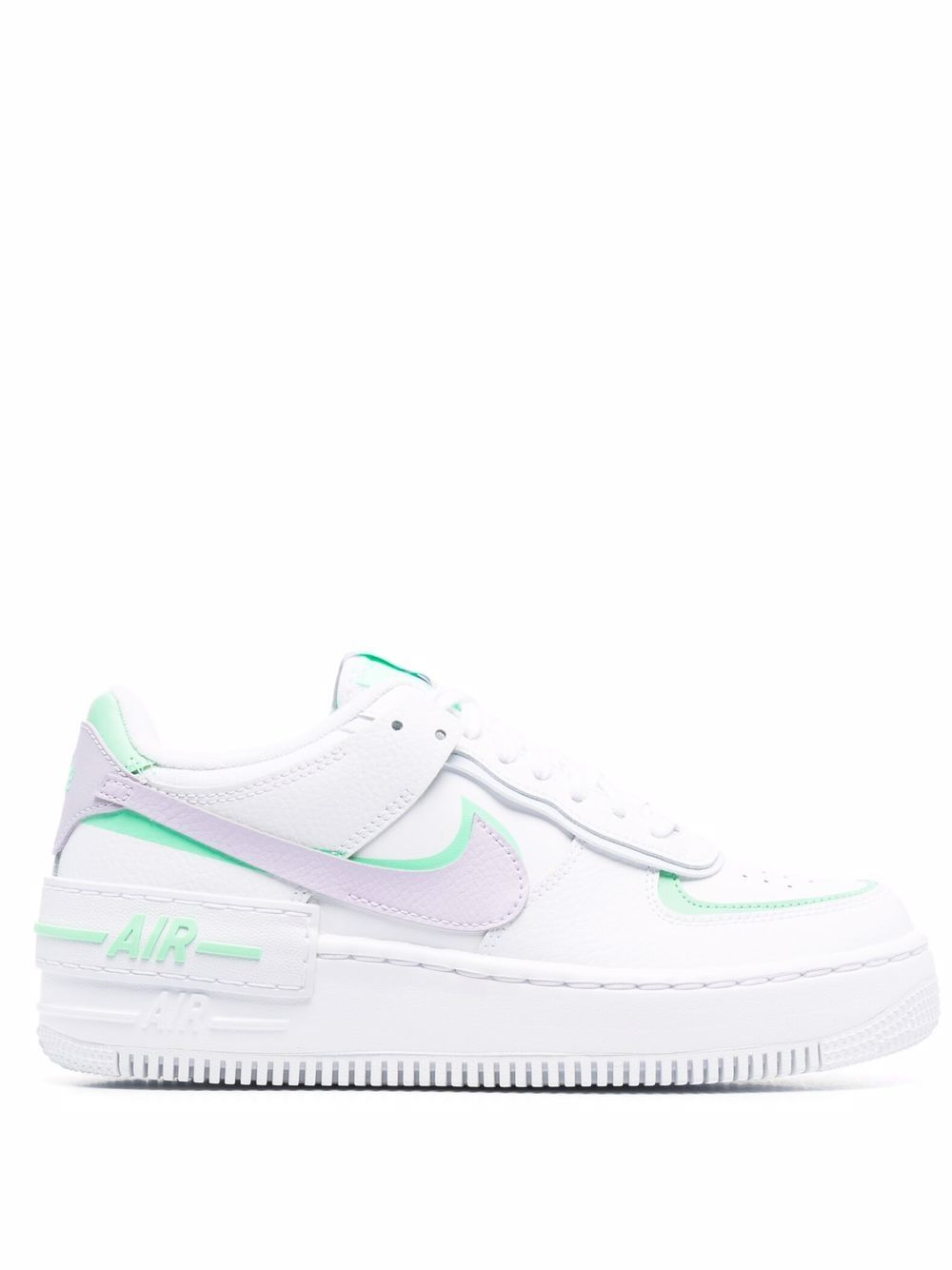AF1 Shadow sneakers Designed with an eye-catching layered-effect, which celebrates the multiple roles a woman plays in her lifetime; this pair of low-top Nike Air Force 1 Shadow sneakers pay tribute to women around the world. Dressed in white leather, these everyday sneakers feature green and light purple accents. Imported Composition Sole: Rubber 100% Outer: Leather 100%, Fabric 100% Lining: Fabric 100% SIZE & FIT Measurement HEEL 1.57 in(4 cm) Sole height 1.18 in(3 cm)