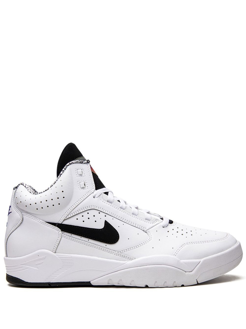 Air Flight Lite mid-top sneakers Nike's Air Flight Lite is back - this time, in a white and black colour scheme. This pair is crafted from white leather, while perforated detailing brings breathability, and the black Swoosh logo stands out on the sides. Underneath, a rubber sole completes the look with comfort. Imported Composition Leather 100% SIZE & FIT Measurement HEEL 1.37 in(3.5 cm) Sole height 0.98 in(2.5 cm) HEIGHT 3.54 in(9 cm)