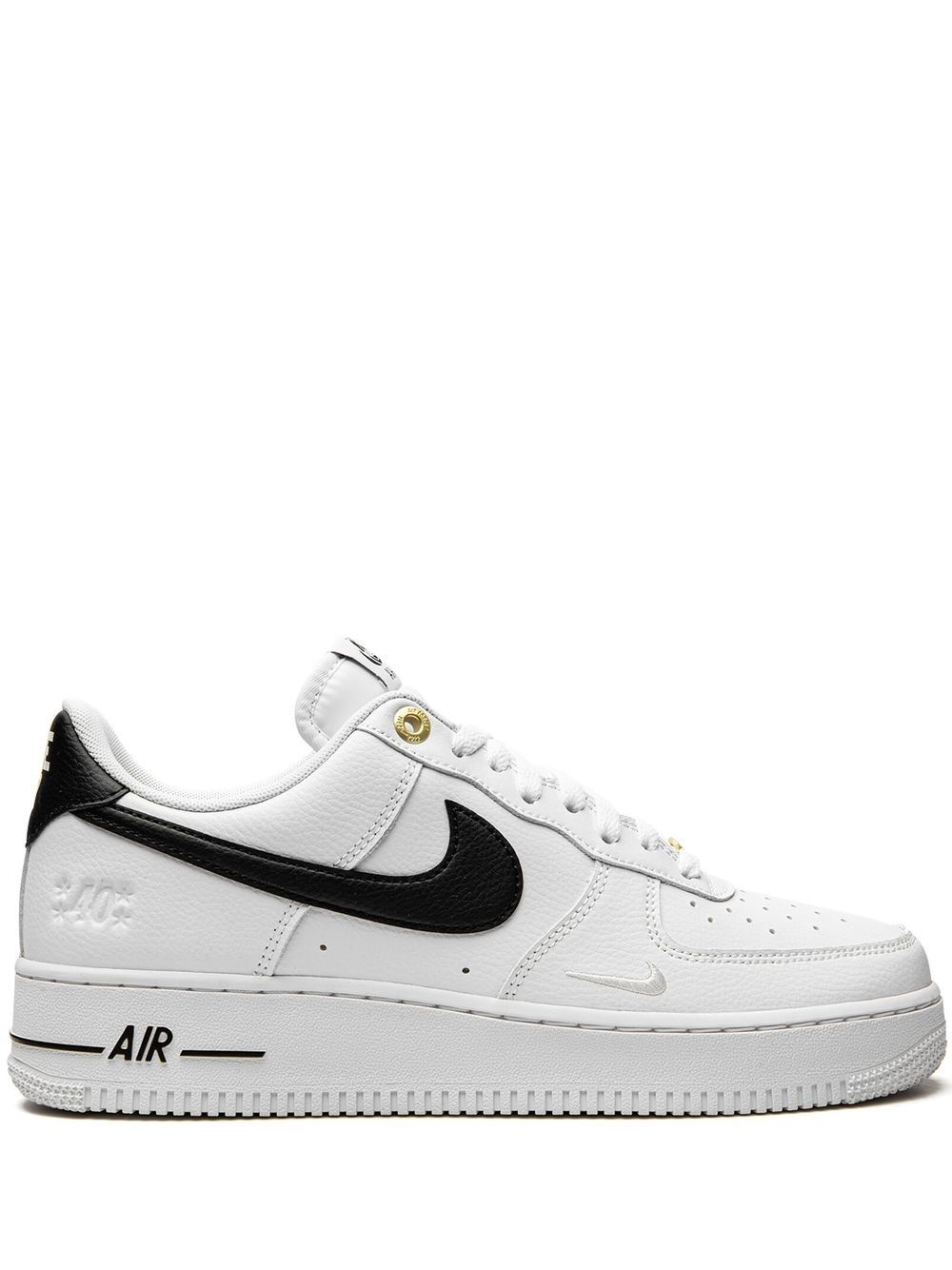 Air Force 1 ’07 LV8 "White/Black" sneakers Nike presents the commemorative Air Force 1 '07 LV8 sneakers for the 40th anniversary. The pair combines unique elements like gold tone detailing and the embossed 40 for a special touch in this white and black iteration. Imported Composition Leather 100% SIZE & FIT Measurement HEEL 1.57 in(4 cm) Sole height 1.18 in(3 cm)