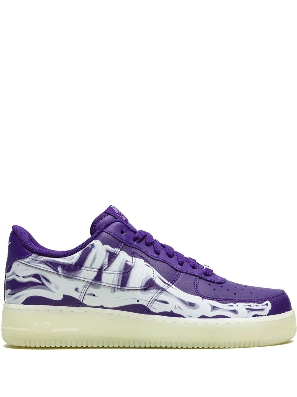 Air Force 1 Low '07 QS "Purple Skeleton Halloween" sneakers Nike's Air Force 1 Low “Skeleton” series began in 2018 when the Swoosh applied x-ray imagery of a foot onto the AF1. This new purple interaction is crafted from leather and highlited with foot bones onto the upper, insole, and even on the tongue label. Underneath, the opaque sole illuminates in the dark. Highlights - Purple - Leather - All-over graphic print - Round toe - Front lace-up fastening - Logo patch at the tongue - Branded insole - Rubber sole - Embroidered logo to the rear - These styles are supplied by a premium sneaker marketplace. stocking only the most sought-after footwear, they source and curate some of the most hard to find sneakers from around the world. Imported Composition Leather 100% SIZE & FIT Measurement HEEL 1.57 in(4 cm) Sole height 1.18 in(3 cm)
