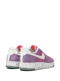 Air Force 1 Low "Crater Flyknit" sneakers Nike brought back the Air Force 1 Flyknit, with shades of pink and purple throughout. This version is constructed with a Flyknit upper, white suede appears on the eyestays, Swoosh logos, and heel. The pink colour lands on the tongue labels, the ‘Move to Zero’ logo hits the Volt insoles, and Nike’s Grind material adorns the outsole to finish the look. Imported Composition Sole: Rubber 100% Outer: Fabric 100% Lining: Fabric 100%
