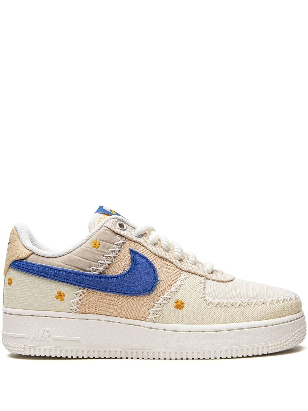 Air Force 1 Low "Los Angeles Flea" sneakers These Nike Air Force 1 Low sneaker draws inspiration from Los Angeles outdoor markets. This pair is crafted from canvas in neutral tones and is enhanced with a royal blue Swoosh and mini flowers throughout. Underneath, a rubber sole completes the look. Highlights - Beige - Canvas - Signature swoosh logo detail - Contrast stitching - Embroidered motif - Round toe - Front lace-up fastening - Logo patch at the tongue - Branded insole - Rubber sole - These styles are supplied by a premium sneaker marketplace. stocking only the most sought-after footwear, they source and curate some of the most hard to find sneakers from around the world. Imported Composition Outer: Canvas 100% Sole: Rubber 100% Lining: Fabric 100%