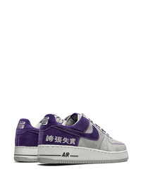 Air Force 1 low-top sneakers All eyes on you. And all eyes on your footwear. In grey and purple tones, these Air Force 1 sneakers from Nike are the pair that you've been waiting for. Highlights - Grey/purple - Leather - Signature swoosh logo detail - Logo patch at the tongue - Perforated - Round toe - Front lace-up fastening - Rubber sole - Branded sole - Embroidered text - These styles are supplied by a premium sneaker marketplace. stocking only the most sought-after footwear, they source and curate some of the most hard to find sneakers from around the world. Imported Composition Sole: Rubber 100% Outer: Leather 100% Lining: Nylon 100%