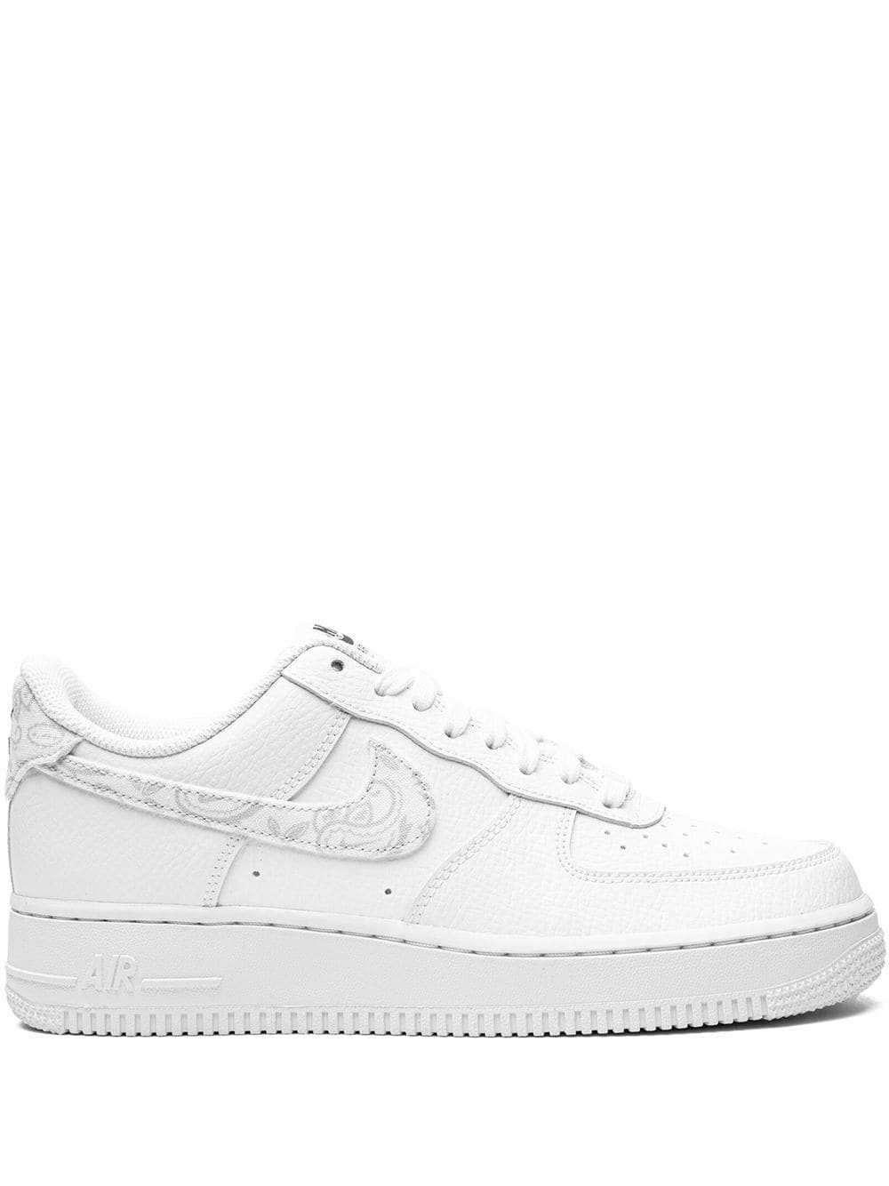 Air Force 1 Low "White Paisley" sneakers The Nike Air Force 1 Low "White Paisley" features crisp white tumbled leather uppers with “Grey Fog” bandana prints decorating the side Swooshes and heel tabs. This pair is highlighted with Nike Air branding on the tongue tab and heel tab, while a classic white rubber sole unit completes the look. Imported Composition Leather 100%